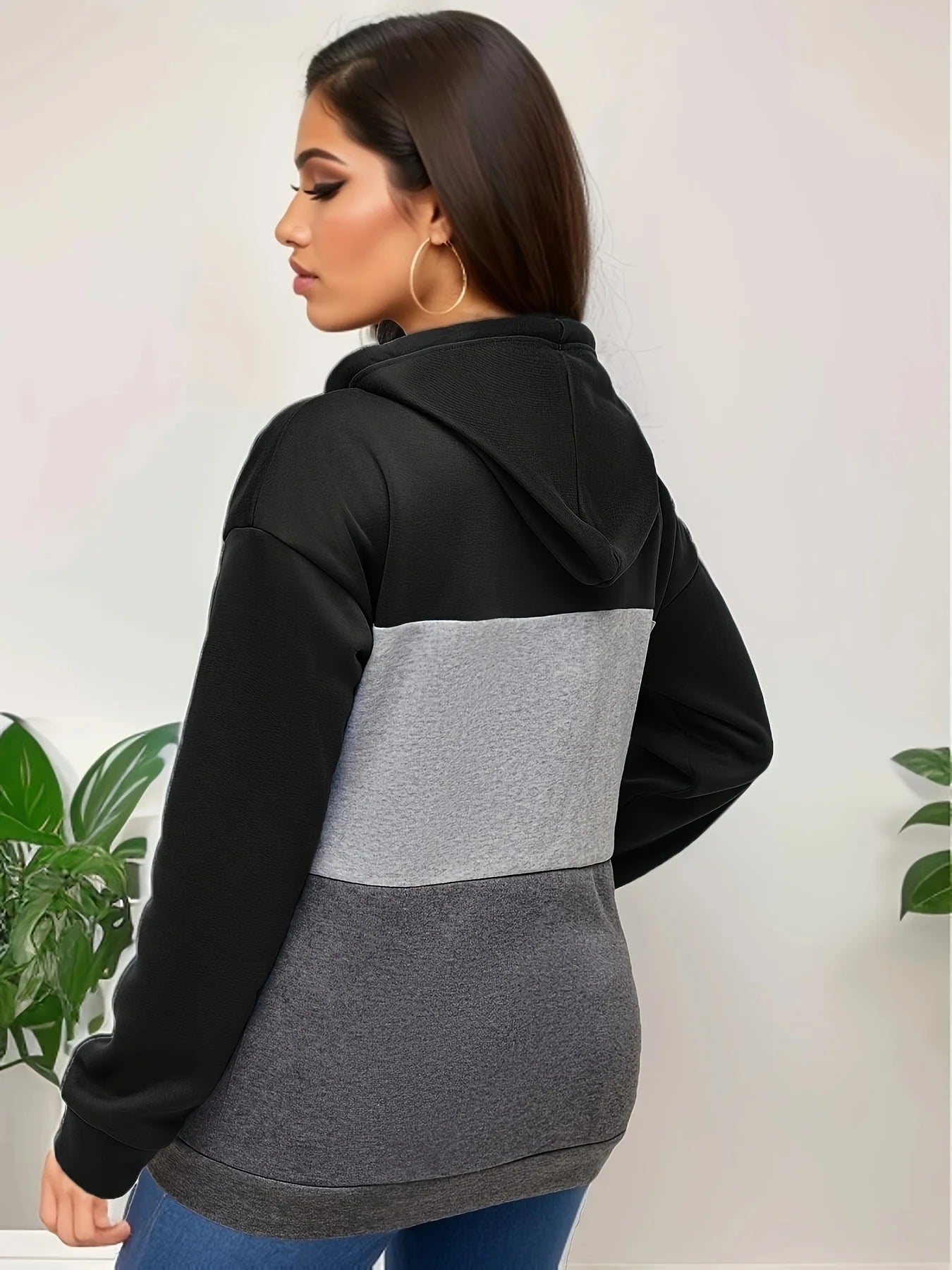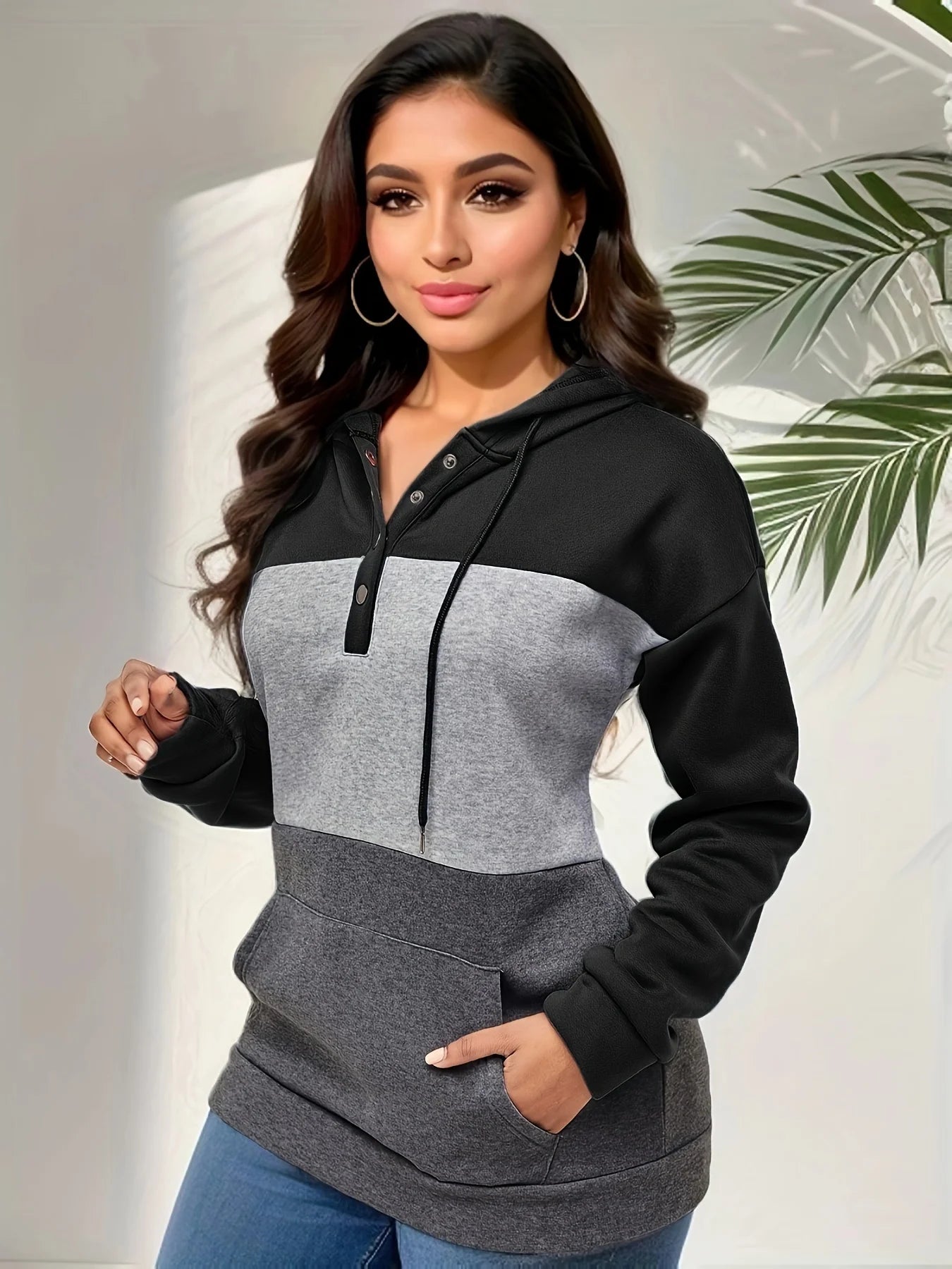 Hoodies For Women with Designs Patchwork Buttons Long Sleeve Thick Drawstring Graphic Cute Sweatshirt Black