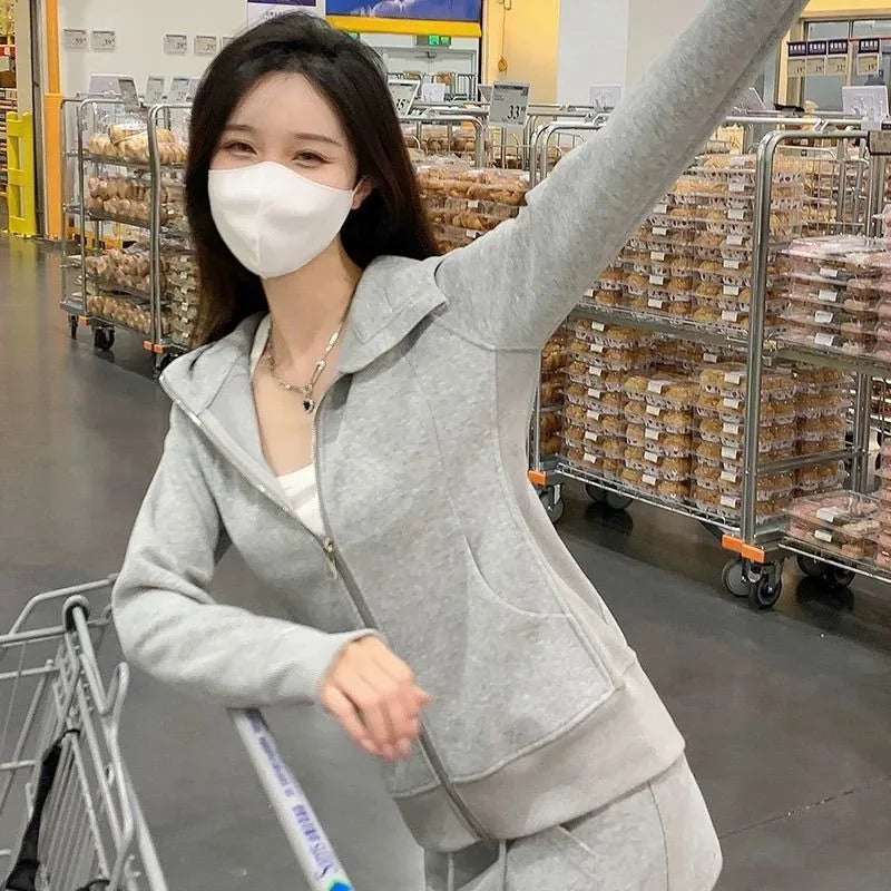 Hoodies Women Clothing Hip Hop Street Vintage Waist Tightening Zip Up Hoodie Woman Clothes Casual Versatile Sweatshirt Tops