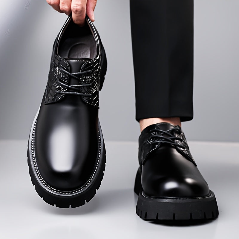 Men'S Business Casual Shoes - Thick Platform Sole for Height Increase & Cushioned Comfort, Lace-Up Formal & Everyday Shoes - Non-Slip Rubber Outsole - All-Season Office, Meetings, Events - Black - Durable & Easy-Clean -like U