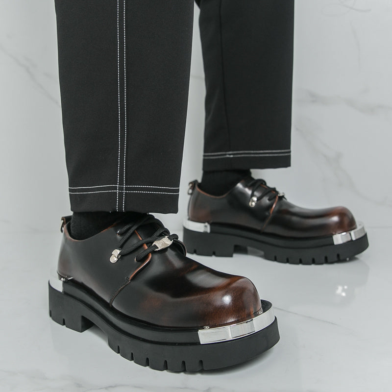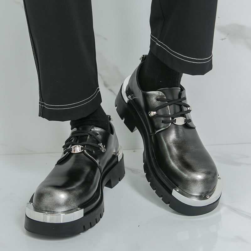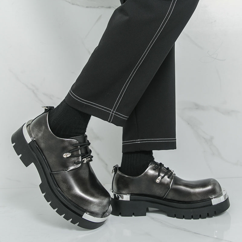 Men'S Chunky Platform Dress Shoes - Slip-Resistant Rubber Sole, Lace-Up Formal & Business Shoes, Glossy Black Faux Cover for Office, Wedding, Party - Cushioned Insole & Non-Slip Outsole, Office Footwear, Sleek Shoe Design, Du