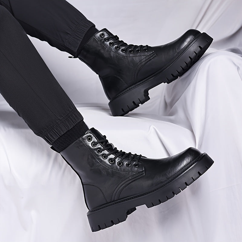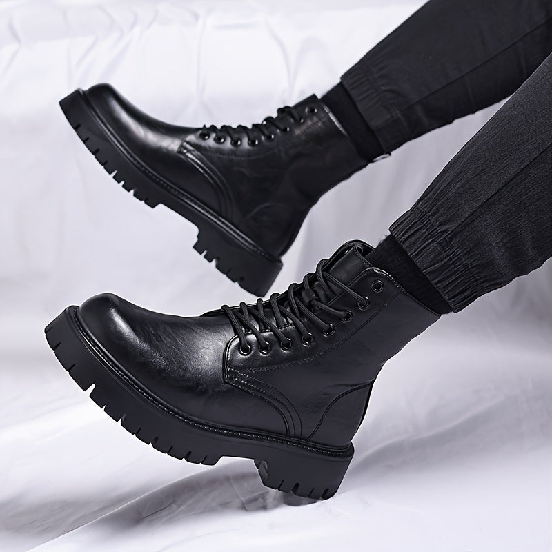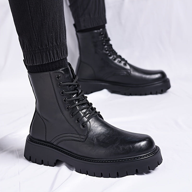 Men's Genuine Motorcycle Boots - Stylish Brown Lace-Up Ankle Boots with Rugged Rubber Sole for Hiking, Camping & Outdoor Adventures, Hiking Boots