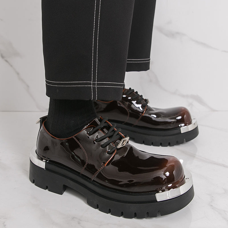 Men's Glossy -like Low-Top Lace-Up Dress Shoes - Glossy Black & Brown Luxury