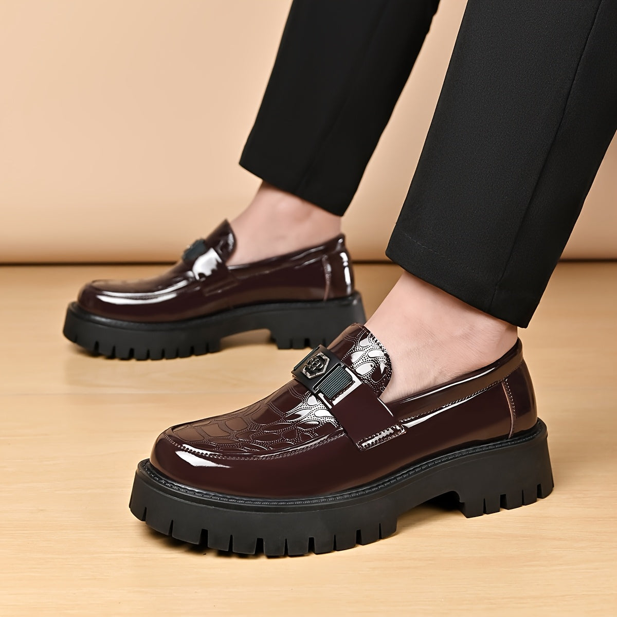 Men's British Style Slip-On Chunky Platform Shoes - Height Increasing Low-Top s with Rubber Sole, Wide Widths (Big & Tall) for Weddings, Business & Casual Wear