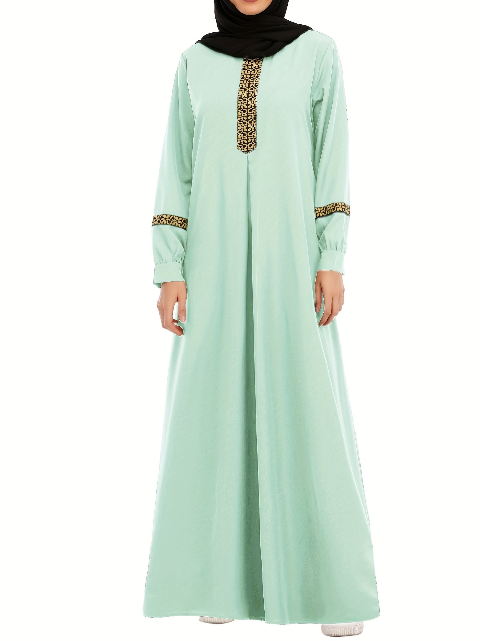 Ramadan Contrast Trim Kaftan, Elegant Long Sleeve Maxi Length Dress, Women's Clothing